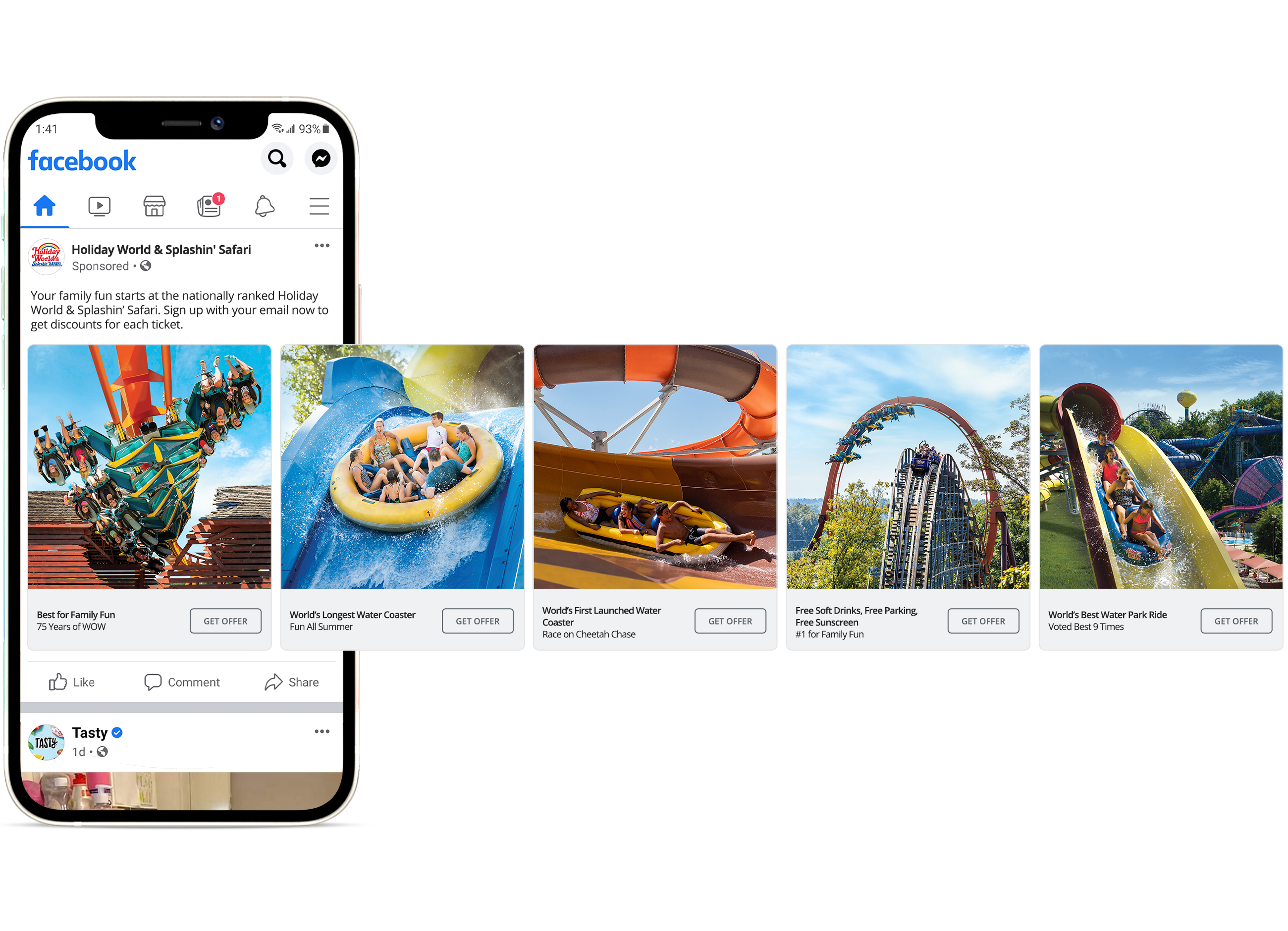 In the park’s first-of-its-kind digital advertising strategy, we diverted advertising funds from our traditional Buy Tickets Campaign to launch a massive Lead Generation Campaign. Targeting for each campaign was split based on awareness level. The Buy Tickets Campaign included ad placements with targeting for high awareness groups (past purchasers, social media followers, etc.), while the Lead Generation Campaign reached low awareness groups (geographically distant markets, general family fun keywords, etc.) and sent users to a landing page where they could sign up for emails to receive a discount code.