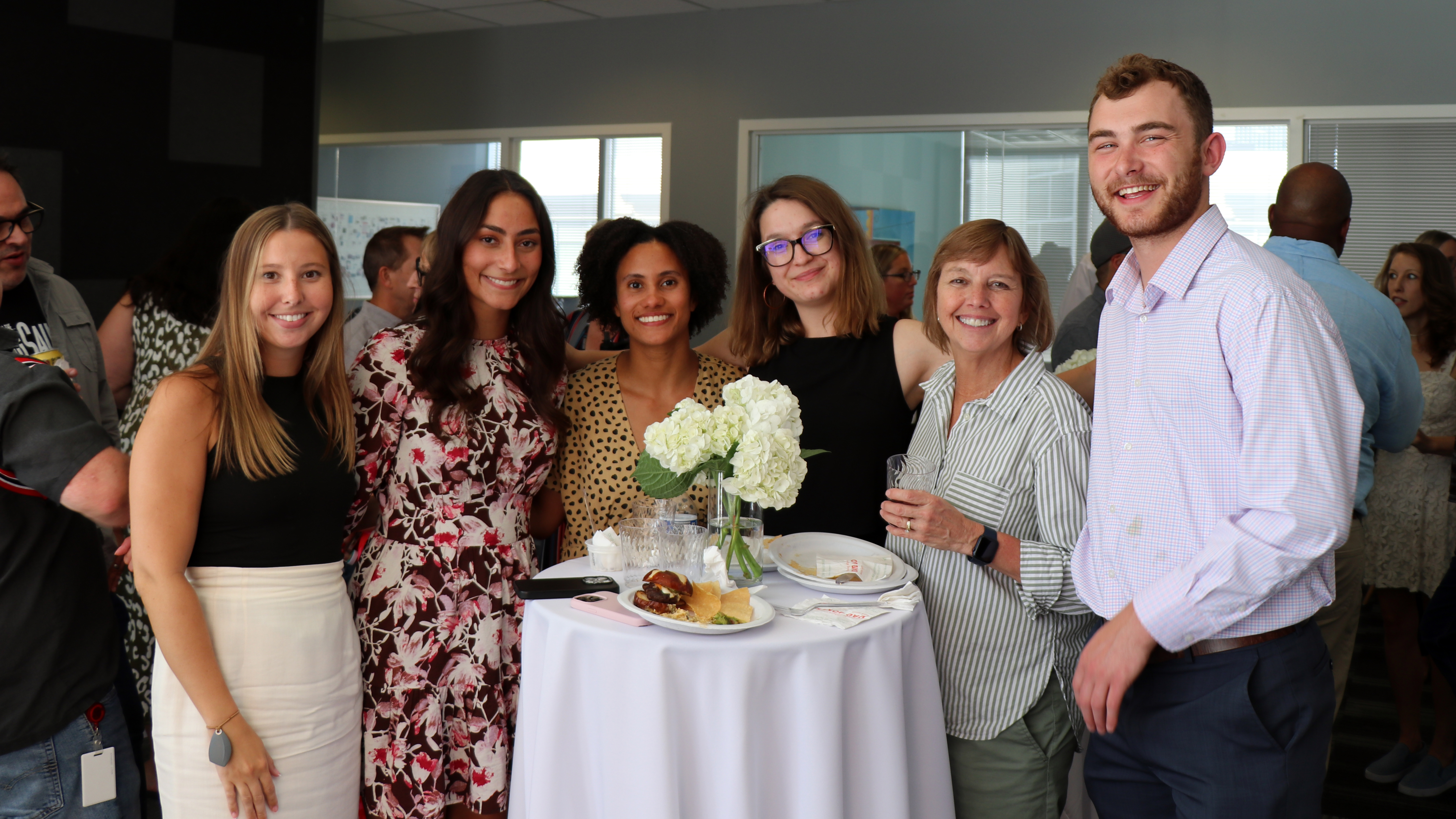 Once he returned to the agency, he was led to the third floor’s Push Pin Lounge where everyone was waiting to yell, “Surprise!”, his grandson Chandler ran up to present him with a card. Over 100 people showed up to honor Gerry on his anniversary, which is evidence of just how impactful his leadership, friendship, and humor have been over the last 40 years. The party was complete with a photo slideshow highlighting various moments of Gerry’s four-decade career, dad joke-adorned napkins, and, of course, drinks, dinner, and desserts for all.