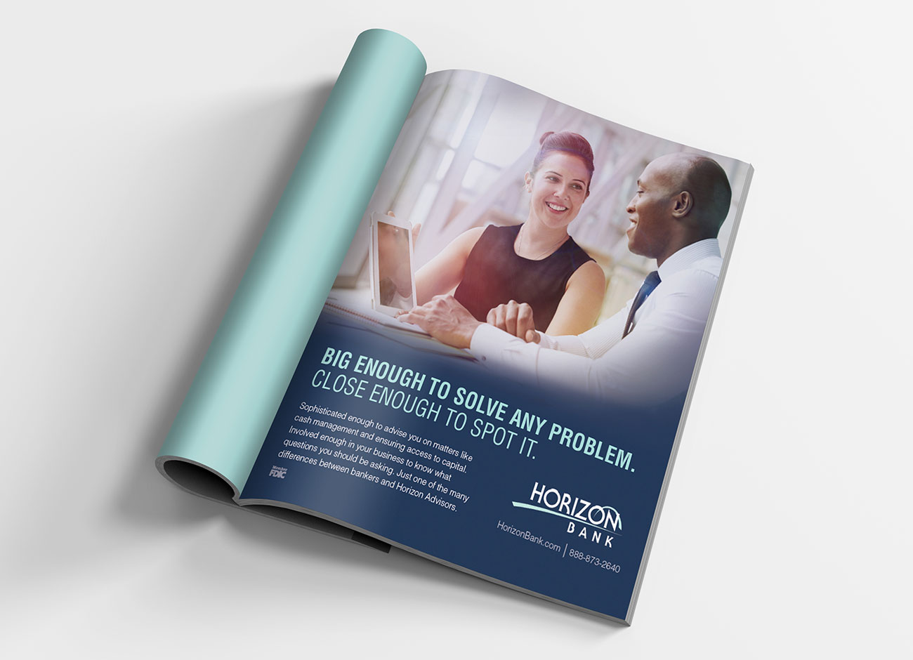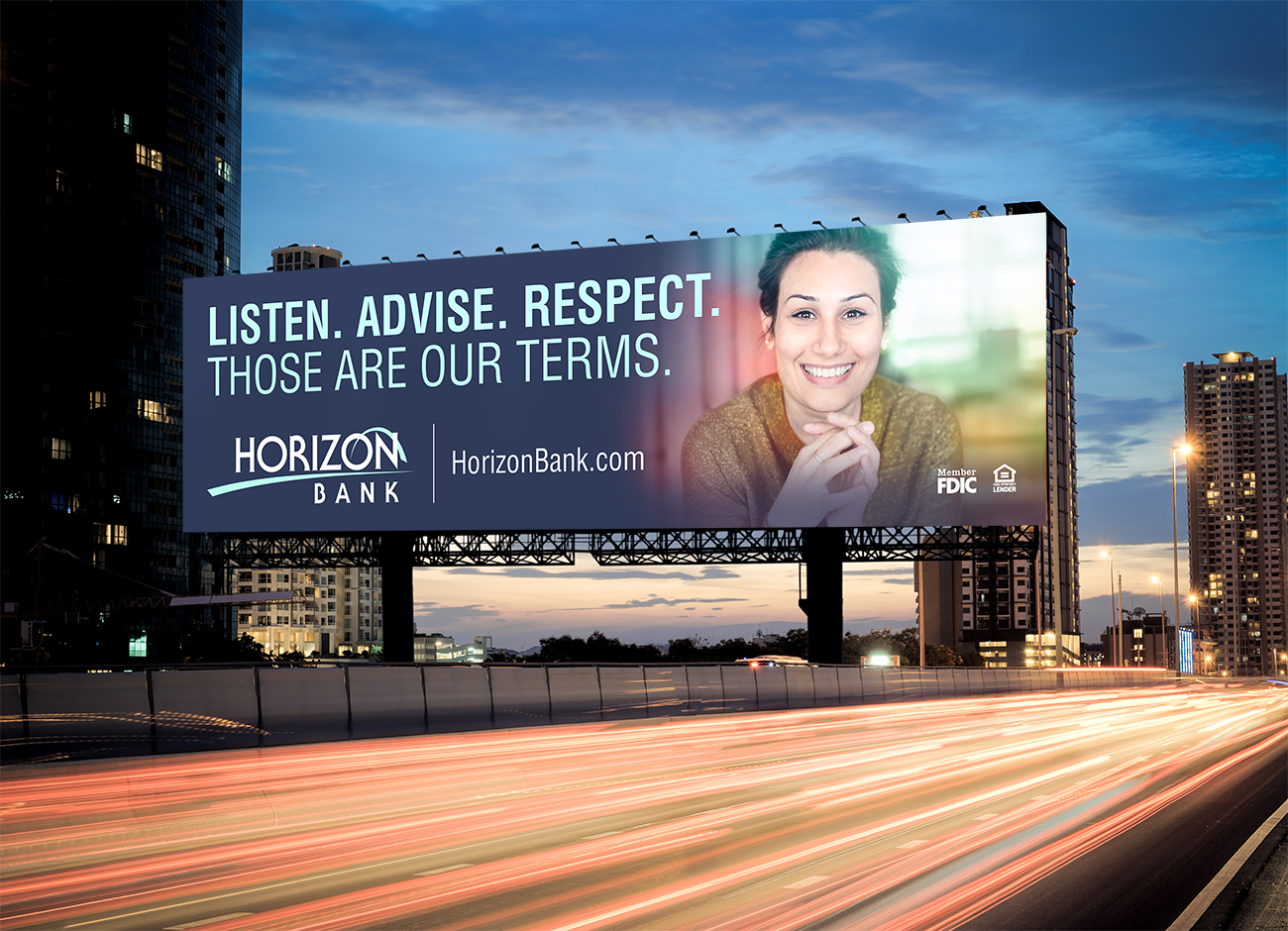 Horizon Bank came to us as a new client with a tall order: to help them stand out in an industry where everyone seems to say the same thing. Specifically, they wanted to refresh their brand and ultimately become smarter marketers through stronger, more strategic creative that is measured for effectiveness. To figure out how best to help them stand out in this massive sea of sameness, we did our research. While we were listening to them, we learned that Horizon Bank really listens to their clients to see how they can best help them. How about that—we listen and they listen. What a great match!
